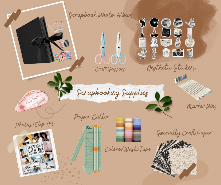 • A scrapbook album (choose a size that feels manageable, like 8×8 or 12×12 inches).